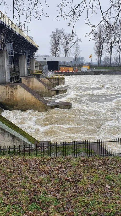 Indrukwekkende stroming vandaag bij de stuw in Linne.